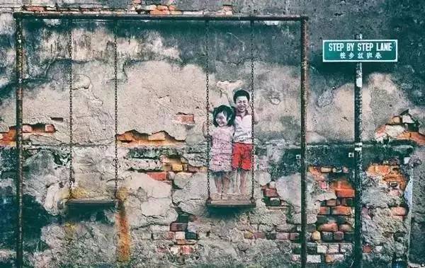 檳城的街頭本身就頗具特色,又被藝術家們在此創作了與場景合二為一的塗鴉壁畫,可謂檳城文藝、最有創意的景觀,就像一座座寶藏,分佈在檳城的大街小巷,等著你去發現。這些童趣的表達,讓人瞬間穿越回童年,和夥伴們一起踢毽子、捉迷藏的情景。而這一系列壁畫被稱為“Mirrors George Town”,也正如其名,這些壁畫對映市井生活的一面面鏡子。