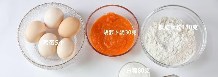 胡蘿蔔泥 30克 / 胡蘿蔔丁 30克 / 純牛奶 130克 / 雞蛋 5個